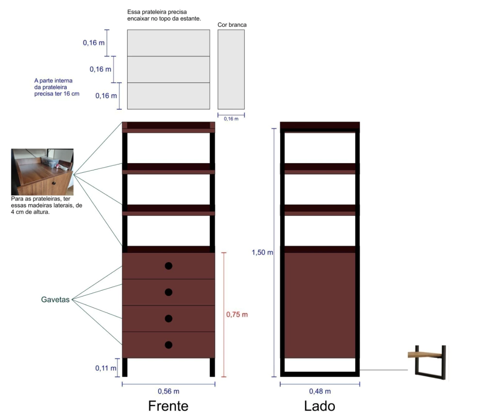É uma estante maior e tem essa estantezinha menor que o cliente colocará em cima, mas seria uma peça separada