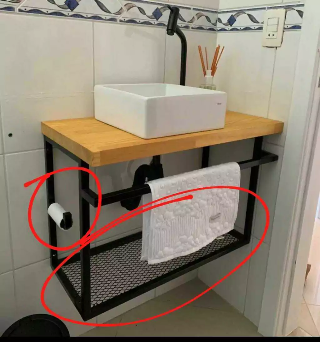 - Suporte de papel higiênico que fica na lateral e prateleira de baixo em tela expandida