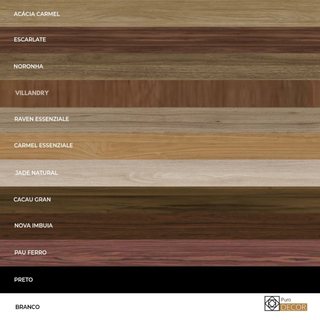 - Tampo em MDF engrossado de 30mm nas cores: Nova Imbuia, Pau Ferro, Cacau Grann, Branca, Preta, Acácia Carmel, Noronha Natural, Villandry, Raven Essenziale, Carmel Essenziale e Jade Natural